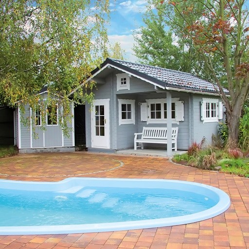 ▪ 19 mm Nut- und Federbretter für Boden (Inklusive Sockelleisten) und Dachschalung