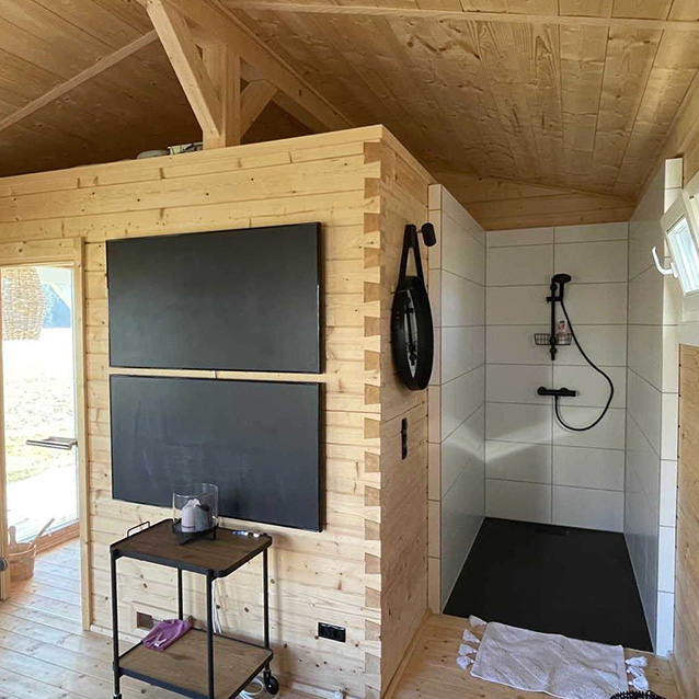 ▪ Schindelpakete, Dachrinne, Saunatechnik (auf Anfrage)