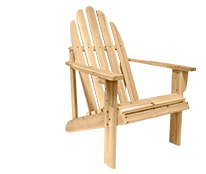 We made our Adirondack chair out of cedar and finished it with clear wood sealer. It is available in white, battleship gray, and forest green colours.